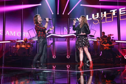 Miriam canta junto a Javián, concursante de la primera edición, el tema "Te quiero, te quiero" en la gala especial de Navidad de 'OT 2017'.