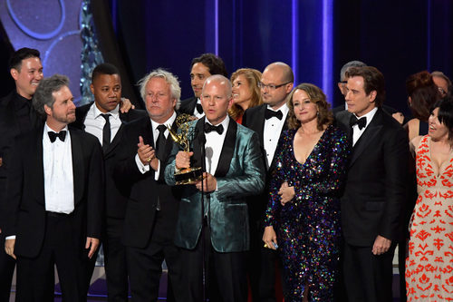 Actores, productores y escritores de 'American Crime story' recogiendo su Emmy a Mejor Miniserie en la 68 edición de los Premios Emmy 2016.