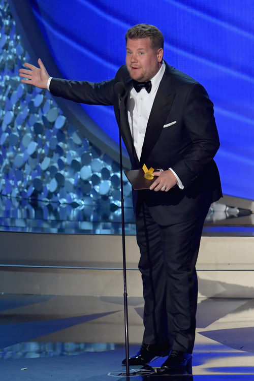 El cómico y presentador James Corden presenta en el escenario del Microsoft Theatre en la 68 edición de los Premios Emmy 2016