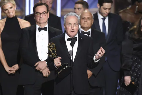 El productor Lorne Michaels da un discurso en los Emmy junto a todo el equipo de 'Saturday Night Live'. El espacio fue premiado con el Emmy a mejor dirección de variedades.