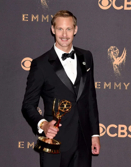 Alexander Skarsgard posa con su galardón en los Emmy 2017