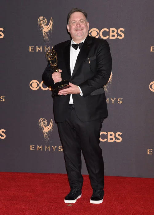 El actor Bruce Miller posa con el Emmy 2017 al Mejor guión de serie dramática por la ficción 'The Handmaid's Tale'.