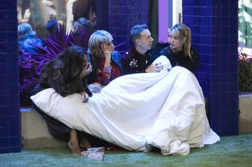 Algunos de los concursantes de 'GH VIP 7' charlan juntos en el jardín en la primera gala de la séptima edición de 'GH VIP 7'.