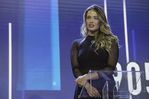 Alyson Rae Eckmann contesta a los medios de comunicación en la rueda de prensa de la semifinal de 'Gran Hermano VIP 5'