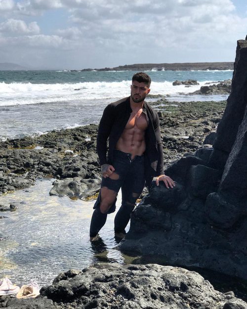 El concursante de 'La venganza de los ex' posa en la playa, con la ropa mojada y la camisa abierta dejando ver su cuerpo.