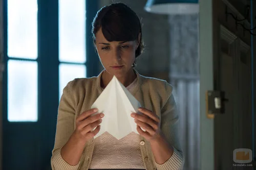 Ana lee una nota en un avión de papel en 'Galerías Velvet'