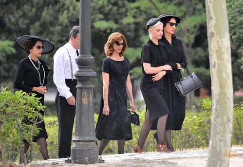 Miriam Giovanelli, Manuela Velasco y Natalia Millán en el rodaje de 'Galerías Velvet'