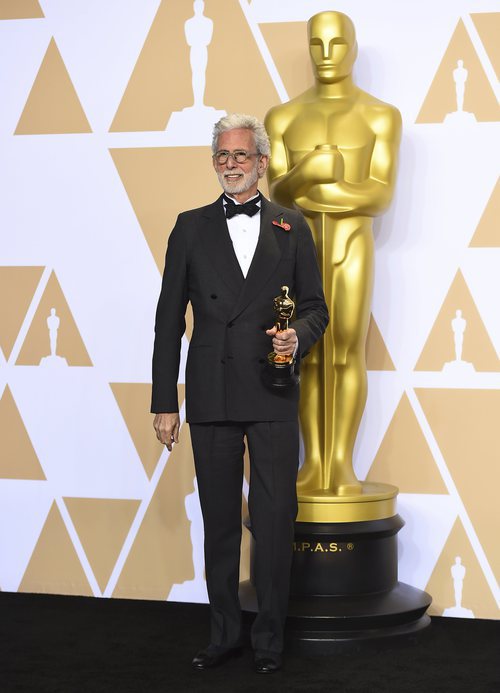 Frank Stiefel posa con el Oscar a Mejor Cortometraje Documental