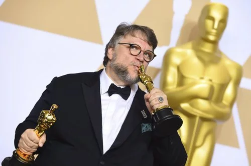 Guillermo del Toro posa con los Oscar a Mejor Película y Mejor Director