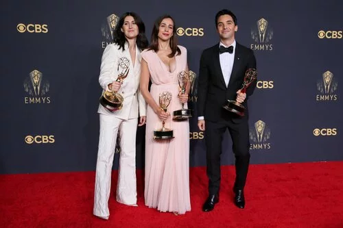 Los guionistas de 'Hacks' posan con su Emmy 2021