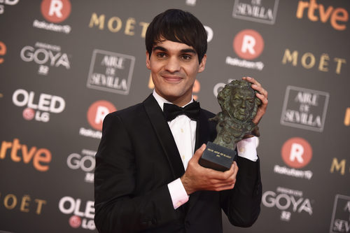 Eneko Sagardoy posa con el premio a Mejor Actor Revelación en los Goya 2018
