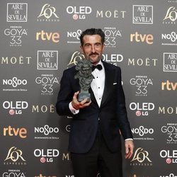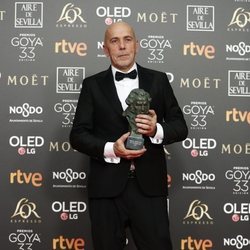 Josu Incháustegui con su Goya 2019 por su trabajo en "La sombra de la ley"