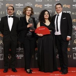 Carlota Pereda junto al equipo de "Cerdita" con su Goya 2019 a Mejor corto de ficción
