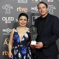 Raúl de la Fuente y Amaia Remírez con su Goya 2019 a Mejor película de animación por "Un día más con vida"