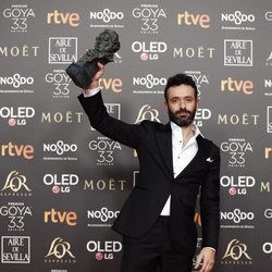Coque Malla con su Goya 2019 a Mejor canción original por su trabajo en "Campeones"