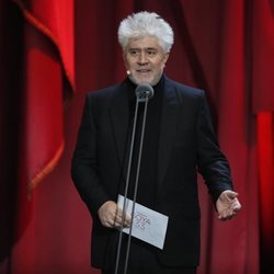 Pedro Almodóvar en la gala de los Premios Goya 2019 entregando uno de ellos