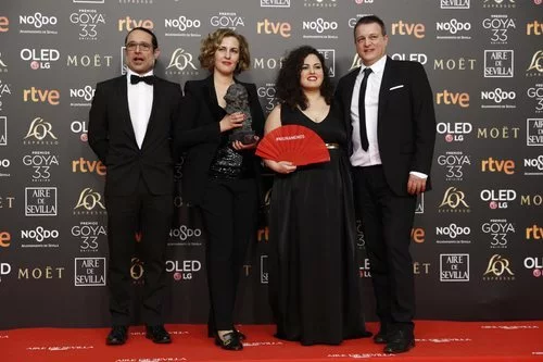 Carlota Pereda junto al equipo de "Cerdita" con su Goya 2019 a Mejor corto de ficción