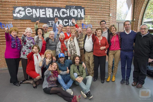 Personas mayores que participan en el programa, junto a miembros del equipo de 'Generación rock', encabezado por Melendi.