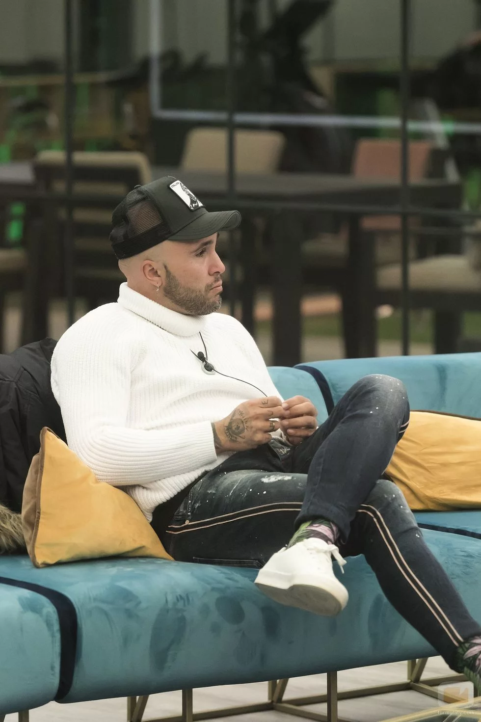 Kiko Rivera sentado en solitario en el sofá de la casa de 'GH Dúo' durante la octava gala del programa de Telecinco.