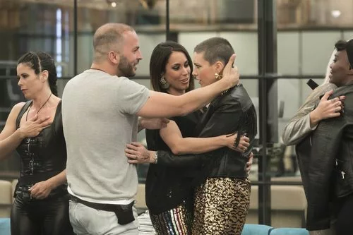 Los compañeros de 'GH Dúo' dan la enhorabuena a María Jesús Ruiz tras salvarse de la expulsión en la Gala 8 por ser la que tiene menor porcentaje de la noche.