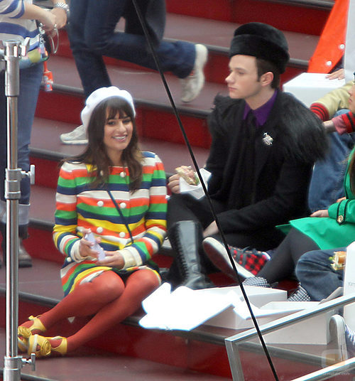 Lea Michele y Chris Colfer en el rodaje de 'Glee'