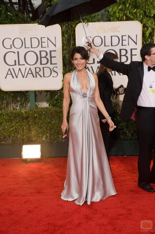 Lisa Edelstein, de 'House', a su llegada a la alfombra roja de los Globos de Oro 2010.