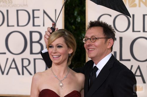 El actor de 'Lost' Michael Emerson junto con Carrie Preston a su llegada a los Globos de Oro 2010.