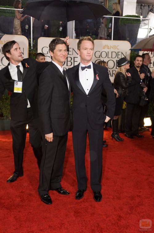 Neil Patrick Harris, de 'Cómo conocí a vuestra madre', junto con su acompañante, a su llegada a la alfombra roja de los Globos de Oro 2010.