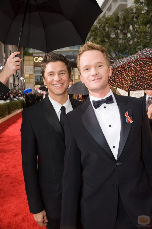 Neil Patrick Harris, de 'Cómo conocí a vuestra madre', junto con novio, David Burtka, a su llegada a la alfombra roja de los Globos de Oro 2010.
