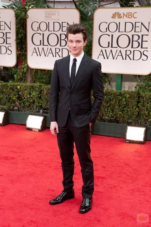 El actor Chris Colfer, de 'Glee', a su paso por la alfombra roja de los Globos de Oro 2012.