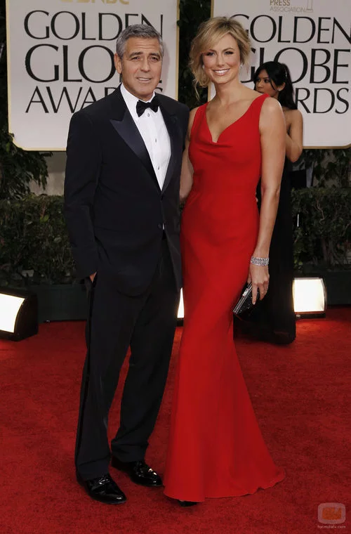 El actor George Clooney y su nueva novia, Stacy Kleiber, inseparables en la alfombra roja de los Globos de Oro 2012.