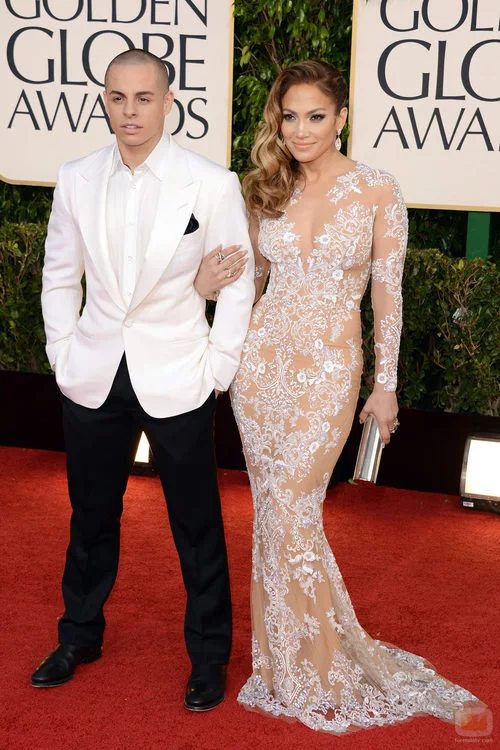 Jennifer Lopez y Casper Smart en la alfombra roja de los Globos de Oro 2013