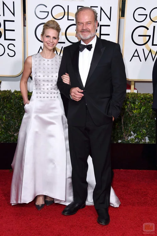 El actor Kelsey Grammer y su pareja Kayte Walsh en la alfombra roja de los Globos de Oro 2015 en la ciudad de Los Ángeles.