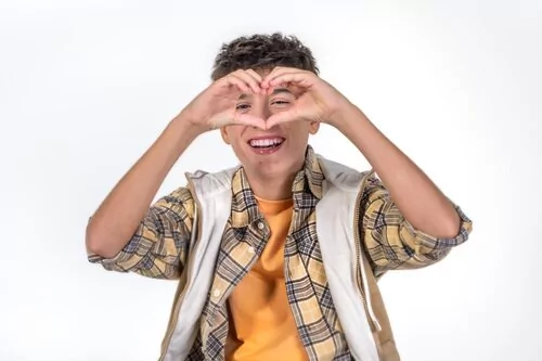 Gonzalo Pinillos (Eurovisión Junior 2025) haciendo un corazón