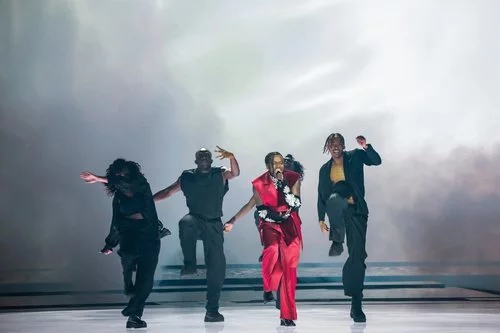 Tusse, representante de Suecia en el Festival de Eurovisión 2021, defiende "Voices" en la gran final del certamen.