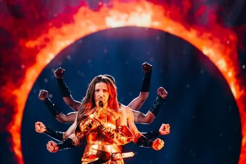 La representante de Georgia en Eurovisión 2024 se sube al escenario de la segunda semifinal para interpretar el tema 'Firefighter'.