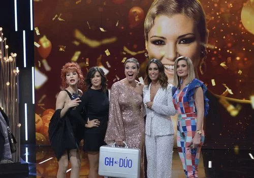 María Jesús Ruiz posa junto a sus apoyos en la final de 'GH Dúo' tras ganar el reality