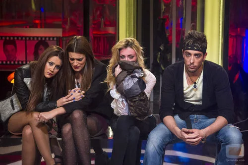 Argi, Susana, Miriam e Iván en la sala de expulsión a la espera de saber quién es el próximo expulsado.