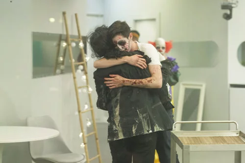 Los dos exconcursantes se abrazan tras conocer la posibilidad de ser repescados para el concurso en la octava gala de 'Gran Hermano'.