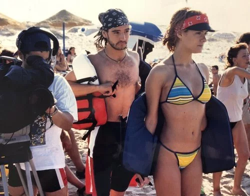 Eva Santolaria (Valle) y Antonio Hortelano (Quimi) durante el rodaje de un mítico capítulo de 'Compañeros' donde montaban en motos acuáticas.