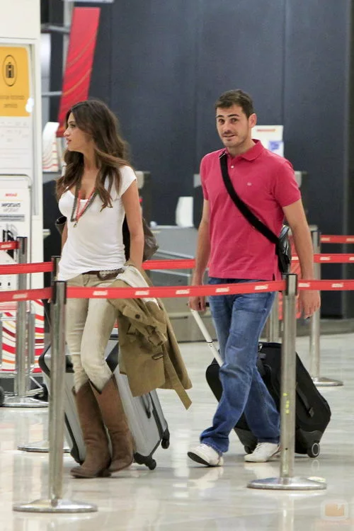 Sara Carbonero e Íker Casillas en el aeropuerto