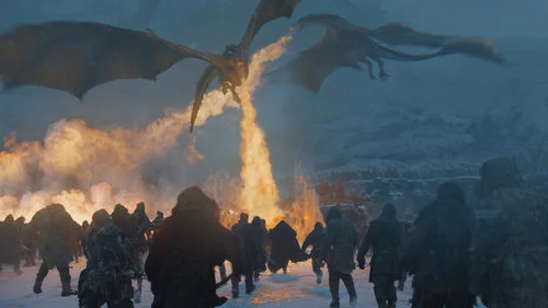 Los dragones de Daenerys Targaryen calcinan al Ejército de Muertos de los Caminantes Blancos durante el 7x06 de 'Juego de Tronos'.