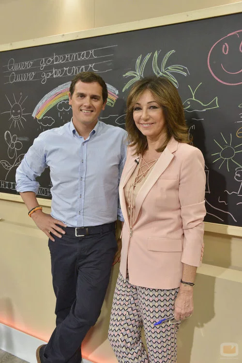 Albert Rivera y Ana Rosa Quintana posan juntos antes de la grabación del programa '26J. Quiero gobernar' de Telecinco.
