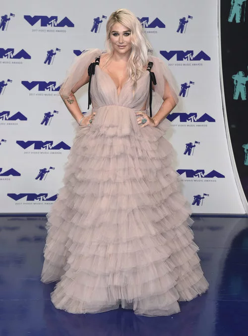 La joven cantante Kesha, posa en la alfombra de los esperados MTV Video Music Awards 2017 celebrados en Inglewood, California.