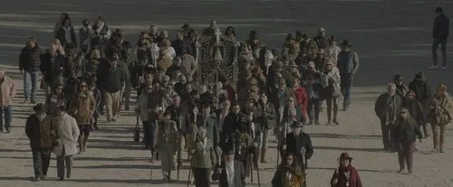 Escena de 'Bajo escucha. El acusado', donde se muestra la romería de la Virgen del Rocío, popular en Almonte, pueblo donde se produjo el crimen analizado en la miniserie.