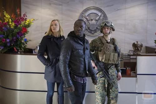 Yvonne Strahovski y Gbenga Akinnagbe en el capítulo 4.