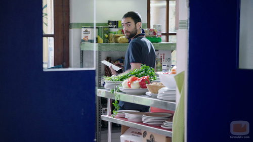 Iñaki (Jon Plazaola) en la cocina del bar de la clínica en el octavo capítulo de la serie de Antena 3 'Allí abajo'.