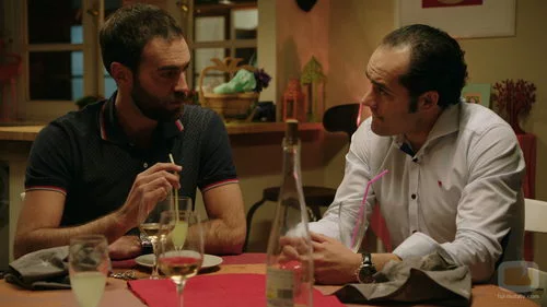 Iñaki (Jon Plazaola) y Rober (Alfonso Sánchez) hablan entre copas en el séptimo capítulo de la serie 'Allí abajo'