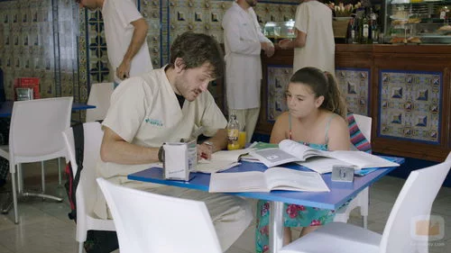 Jozé (Salva Reina) aprende inglés en la cafetería de la clínica, gracias a la sobrina de Carmen el duodécimo capítulo de 'Allí abajo'.
