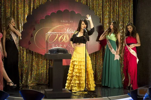 Teresa (Sara Vega) cantando en el concurso organizado en el barco en el segundo capítulo de la serie cómica 'Anclados'.